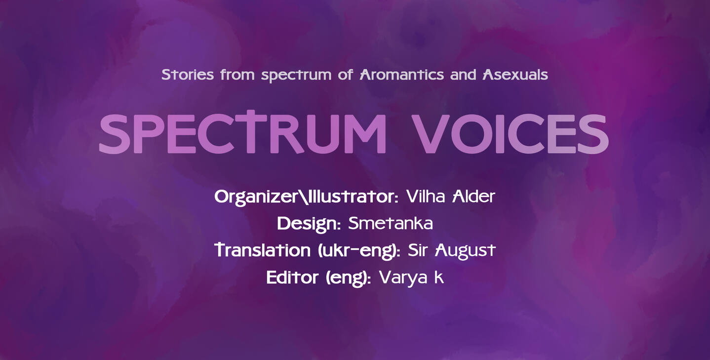 The title “Spectrum Voices” is a wordplay which emphasizes both the variety of the experiences and their right to be heard.Aromanticity, as a spectrum, is about weak romantic attraction or its absence.